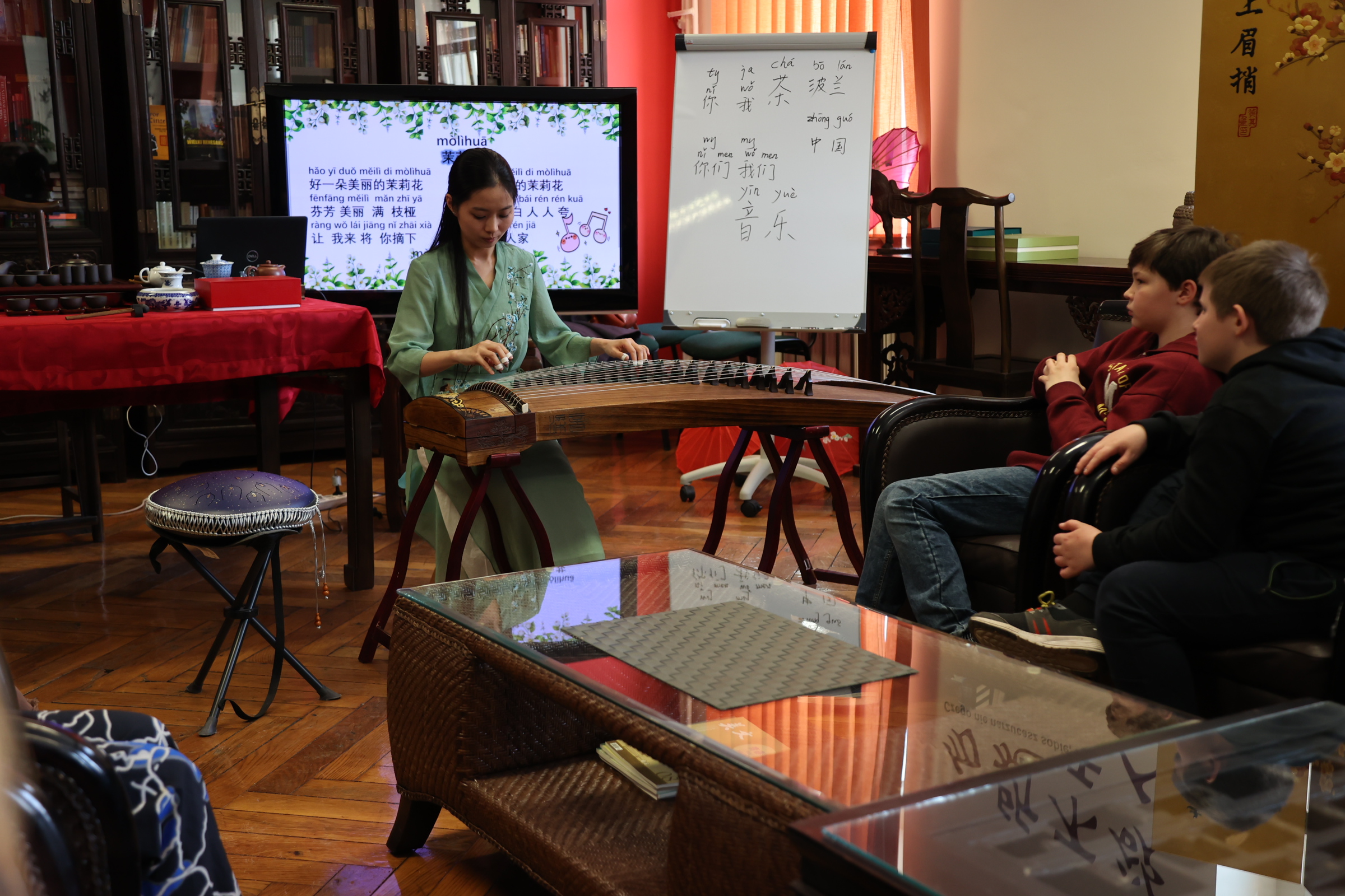 Uczniowie szkoły podstawowej poznawali genezę pisma chińskiego, wycinali wzory w bibule, poznawali ciekawostki o języku, kulturze i chińskich przysmakach.