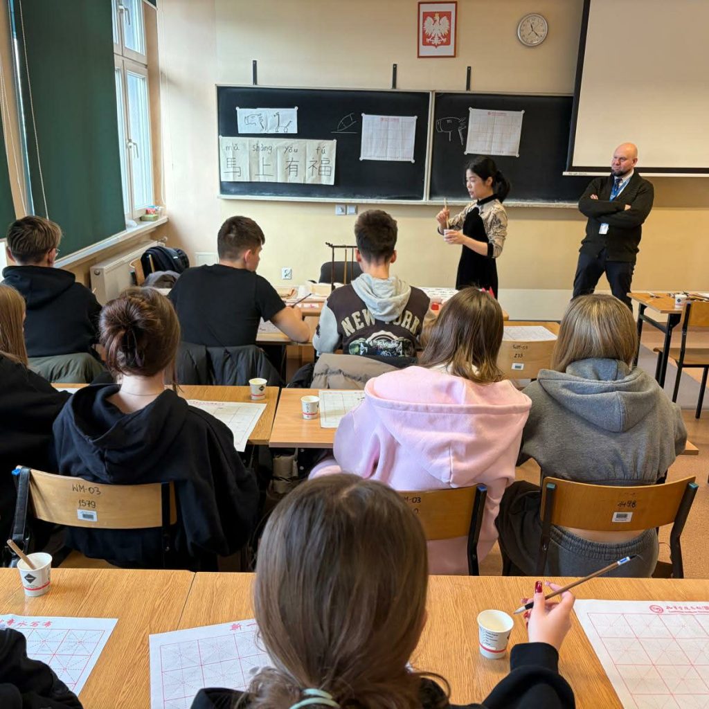23 II nasi pracownicy, Xie Yichao i dr Stanisław Niewiński, przeprowadzili warsztaty z kaligrafii chińskiej dla uczniów Liceum Ogólnokształcącego nr VI oraz Liceum Ogólnokształcącego z Kietrza.